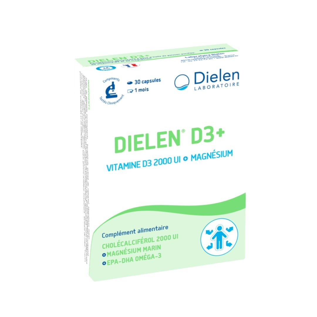 C’est pourquoi, la formule Dielen® D3+ associe la vitamine D3 au magnésium.